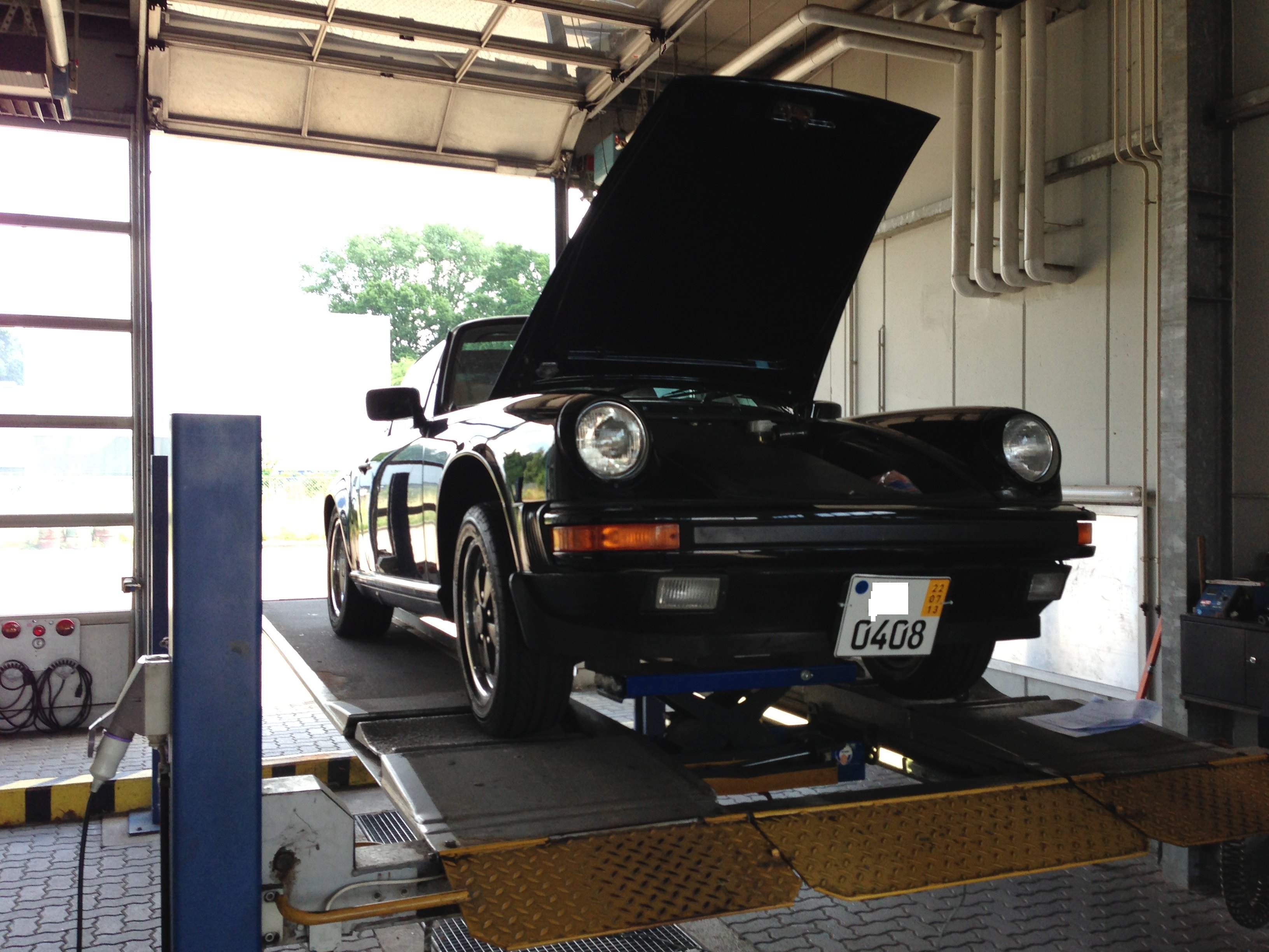 Er redete von den zunehmenden Plagiaten aus China und suchte die Felgen von der Rückseite ab. Die sind Original, das sehe ich meinte er dann. Die sind ja schon älter, also original. Und als er dann noch ein Porsche Logo auf der Rückseite einer Felge entdeckte, war alles gut! Guter Prüfer!!!