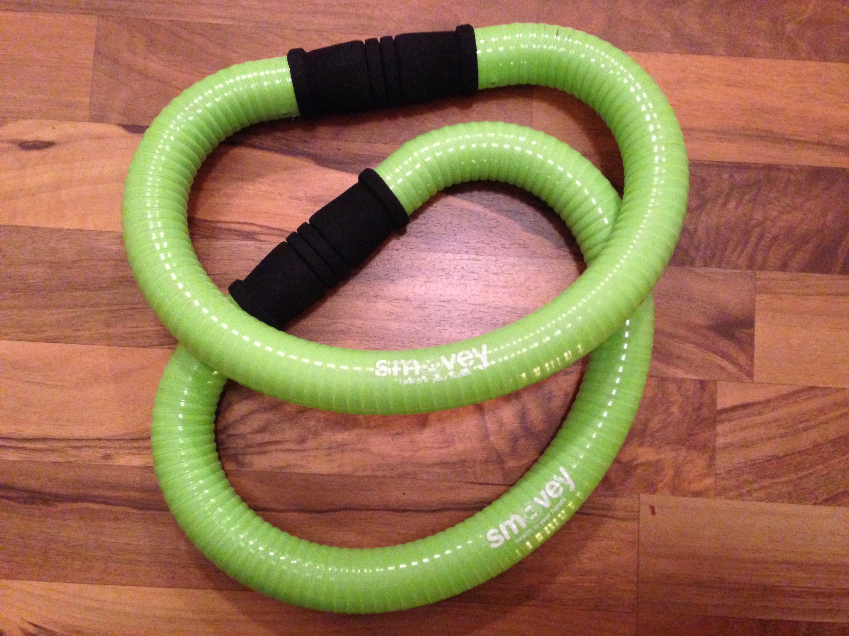 Ganz nebenbei hat sie mir noch eine Geschichte zum „smovey“ erzählt. Diese grünen Dinger wurden von einem Parkinsonkranken mehr zufällig entworfen und halfen ihm dabei die Krankheit in den Griff zu bekommen. Der smovey sind zwei Plastikschläuche mit vier Stahlkugeln, die in Schwingung versetzt eine besondere Vibration erzeugen. Das wirkt sich auf Muskeln, Gewebe, Organe und das Nervensystem aus. Ich habe es selbst nur mal kurz probiert, da ich gerade nicht abnehmen möchte und es mir gesundheitlich auch so ganz gut geht. Von daher verfüge ich über keine Erfahrungswerte zu diesem Gerät…
