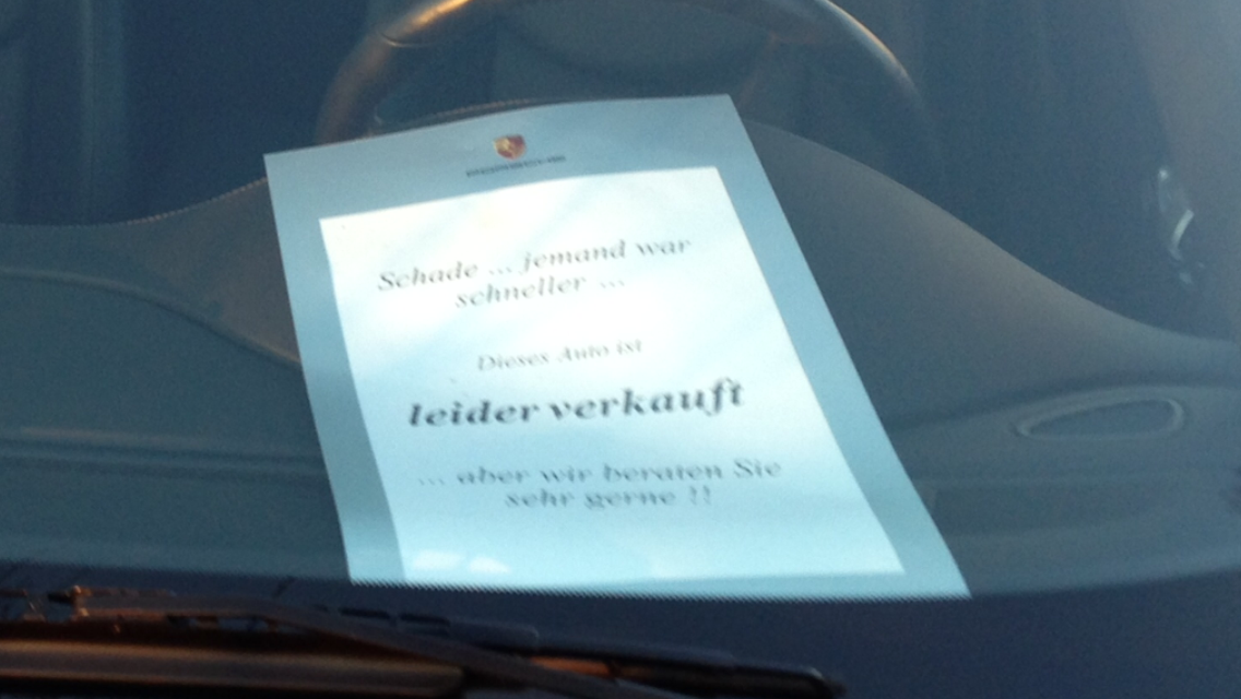Der Verkäufer des PZ berichtete mir dass der Wagen einen Tag zuvor verkauft wurde. So kann es gehen…